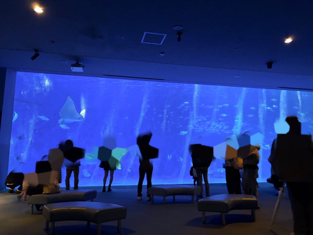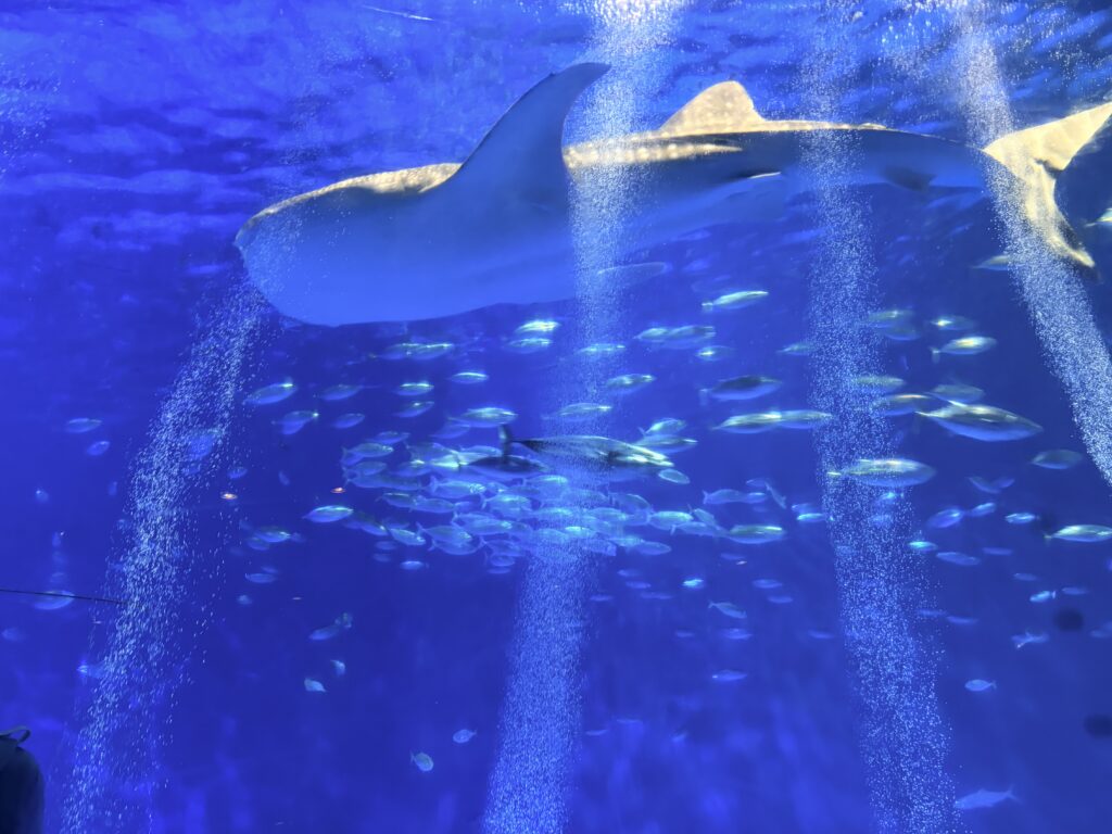 宿をゆっくりチェックアウトして、車で約1時間半。13時前には「いおワールド かごしま水族館」に到着しました。大きなジンベエザメやイルカに、子供たちは終始釘付け!